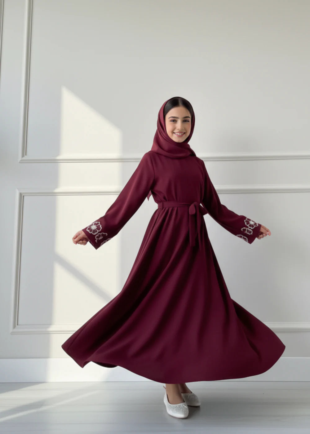 This abaya is a celebration of modesty with a playful flair perfect for Eid, family events.