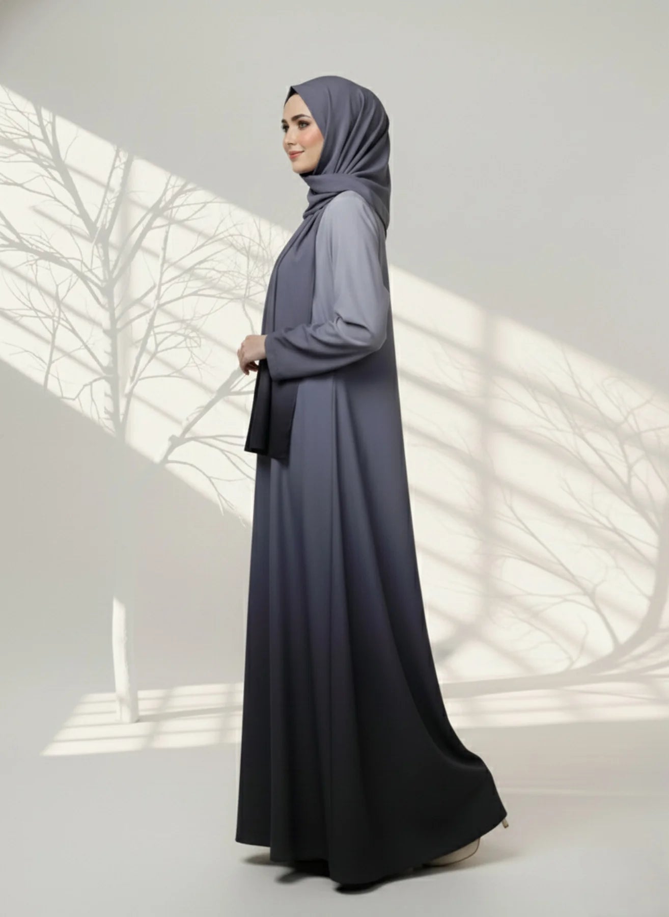 Add a touch of royal elegance to your wardrobe with the Ombre Greyabaya — where sophistication meets effortless style. Designed in a close-front it offers graceful coverage with a relaxed, modern flow. Crafted from premium soft-flowing fabric, this abaya ensures comfort without compromising elegance. The deep grey shade brings a sense of luxury and charm, perfect for both casual outings and special occasions, comes along with matching scarf.